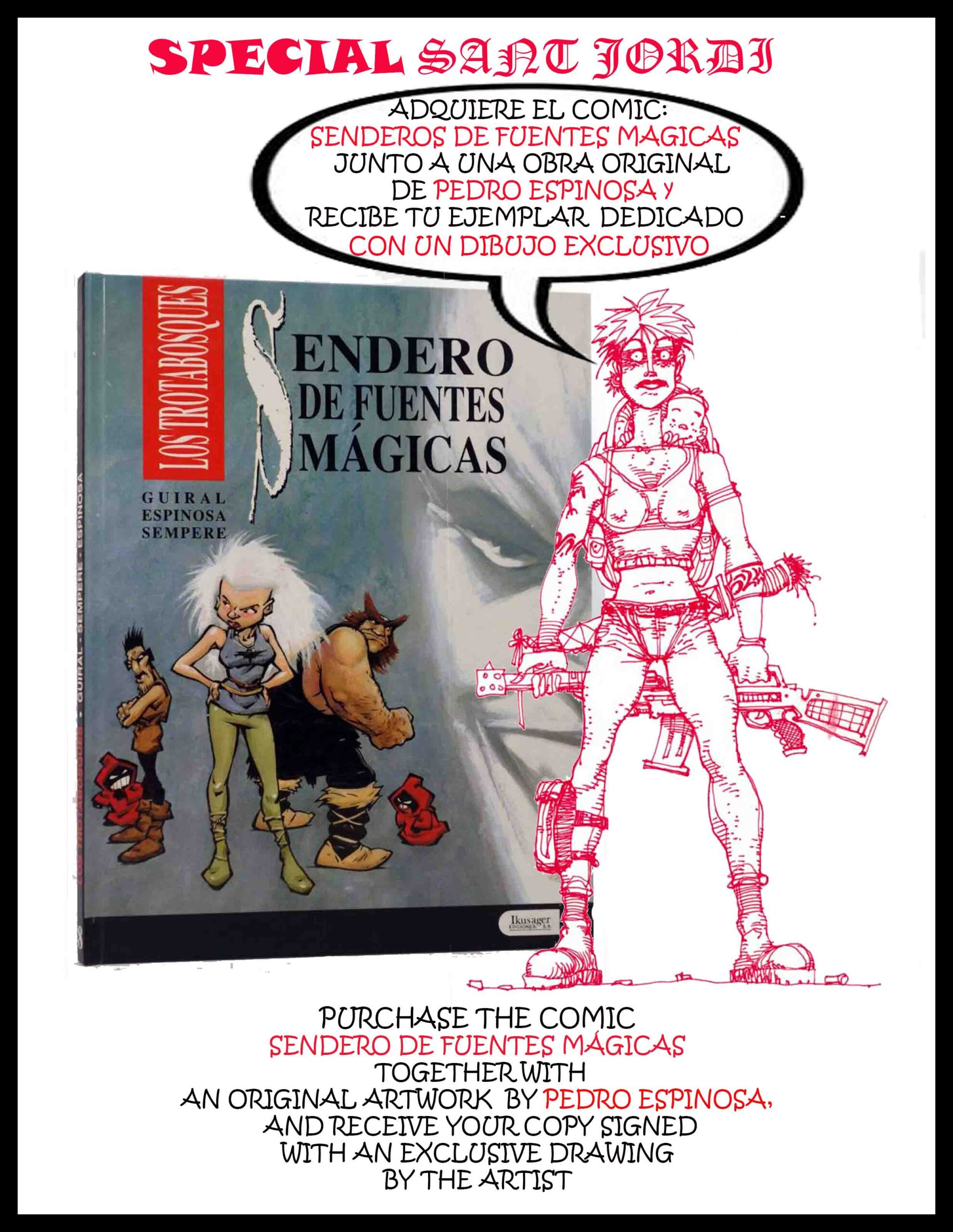 Sant Jordi 2026 Special: Purchase the comic book “Sendero de Fuentes Mágicas” (Path of Magical Fountains) along with an original drawing from the gallery of artist Pedro Espinosa and receive your copy with a personalized inscription inside. Limited to 4 copies – Until April 30, 2026