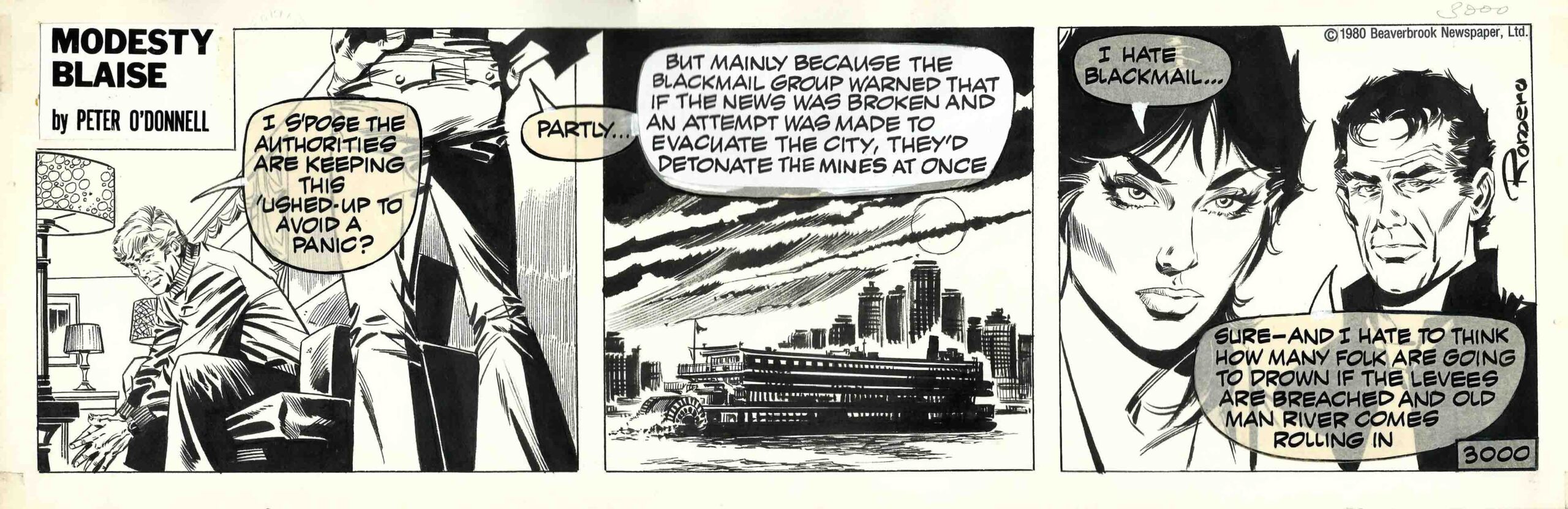 Modesty Blaise – Original daily strip #3000 – Romero